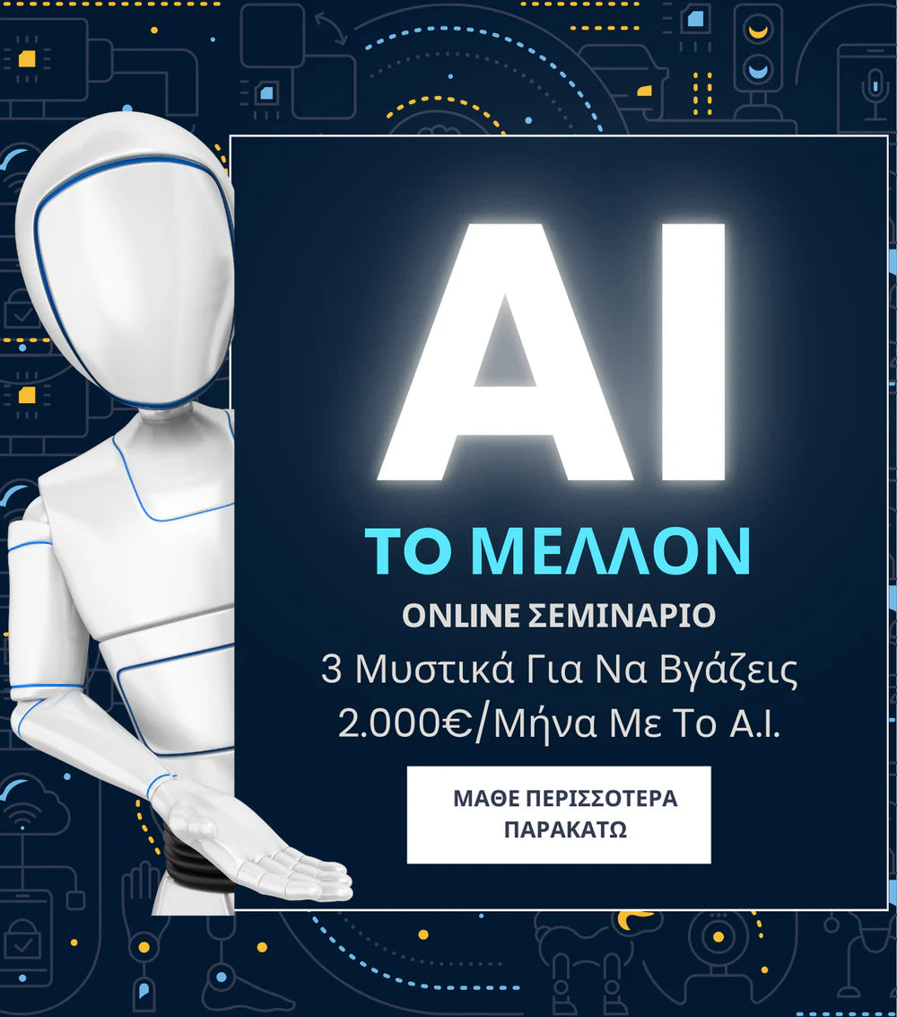 Μάθε ΠερισσότεραΒήμα-Βήμα συνταγή για να φτιάξεις μια online επιχείρηση με τη βοήθεια της τεχνητής νοημοσύνης ακόμα και αν έχεις 0 εμπειρία.
