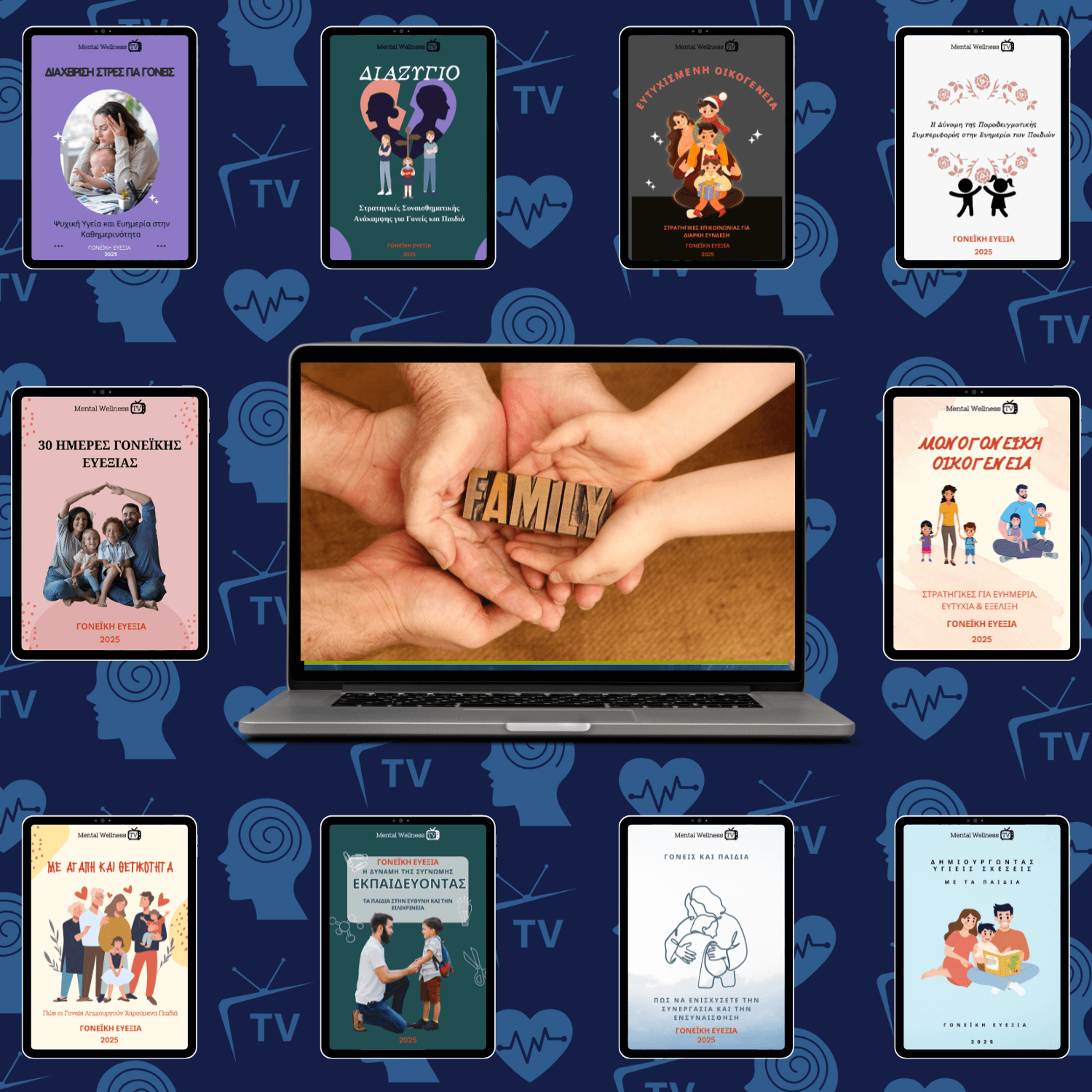 - "Διαχείριση Στρες για Γονείς: Ψυχική Υγεία και Ευημερία στην Καθημερινότητα". Το άγχος της καθημερινότητας είναι συχνό για τους γονείς, αλλά δεν χρειάζεται να το αντιμετωπίζετε μόνοι σας. Αυτό το ebook σας καθοδηγεί σε πρακτικές στρατηγικές για τη διαχείριση του στρες, ενώ παράλληλα προάγει τη ψυχική υγεία και ευημερία στην οικογενειακή ζωή. Μάθετε πώς να παραμένετε ήρεμοι και επικεντρωμένοι σε όλες τις καταστάσεις.